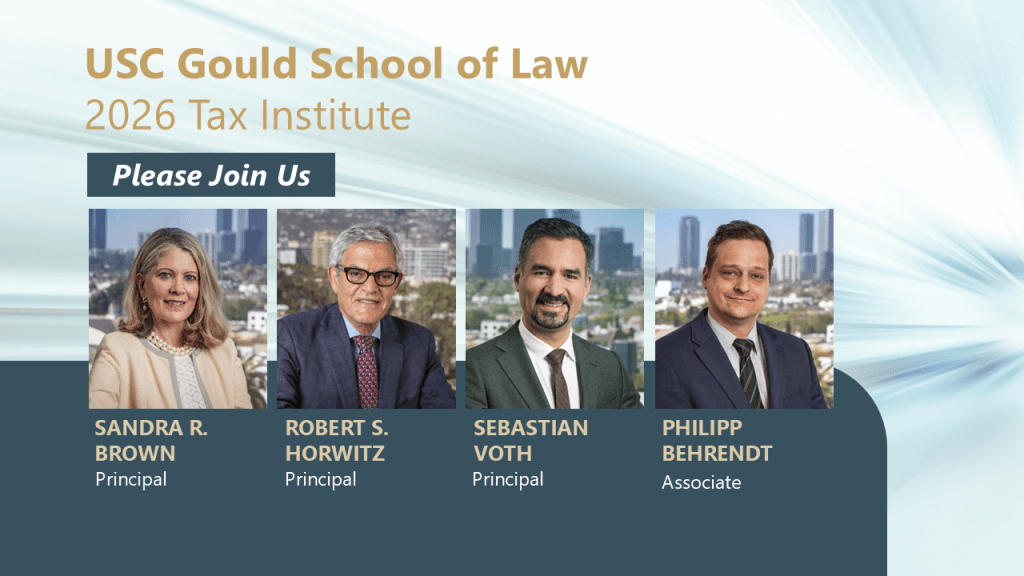 We are pleased to announce that four of our attorneys will be speaking at the upcoming USC Gould School of Law 2026 Tax Institute, January 26-28, 2026 at the Sheraton Grand, Los Angeles on the following key topics: