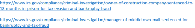 Commissioner Rettig has been beating the drum for more evasion-of-payment referrals from Revenue Officers and focusing on bankruptcy cases is a smart move. Further, bankruptcy cases frequently offer something that standard Revenue Officer referrals do not: judicial findings that the debtor/taxpayer has committed fraud. Where a judge has already found fraud and the debtor owes substantial tax debts, turning that case into a criminal investigation or civil fraud examination is almost a no-brainer. Damon Rowe is a former Special Agent who just moved over from Criminal Investigation, meaning he knows which levers to pull on the criminal side including contacting Bankruptcy Fraud Coordinators with whom he no doubt interacted during his decades as a Special Agent. Those who really pay attention will also note that the IRS refreshed the “Criminal Investigation Strategies” section of its bible, the Internal Revenue Manual, in August 2020 to further underscore that agents should be looking for criminal tax fraud within bankruptcy. https://www.irs.gov/irm/part9/irm_09-005-003#idm139666666427792