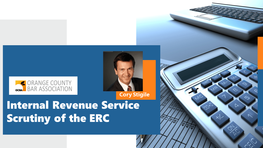 We are pleased to announce that Cory Stigile will be speaking at the upcoming OCBA webinar “Internal Revenue Service Scrutiny of the ERC,” Thursday, March 9, 2023, 11:00 a.m. – 12:00 p.m. (PST).