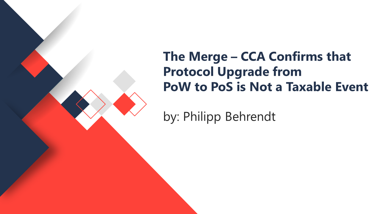 The Merge – CCA confirms that Protocol Upgrade from PoW to PoS is not a Taxable Event by PHILIPP BEHRENDT
