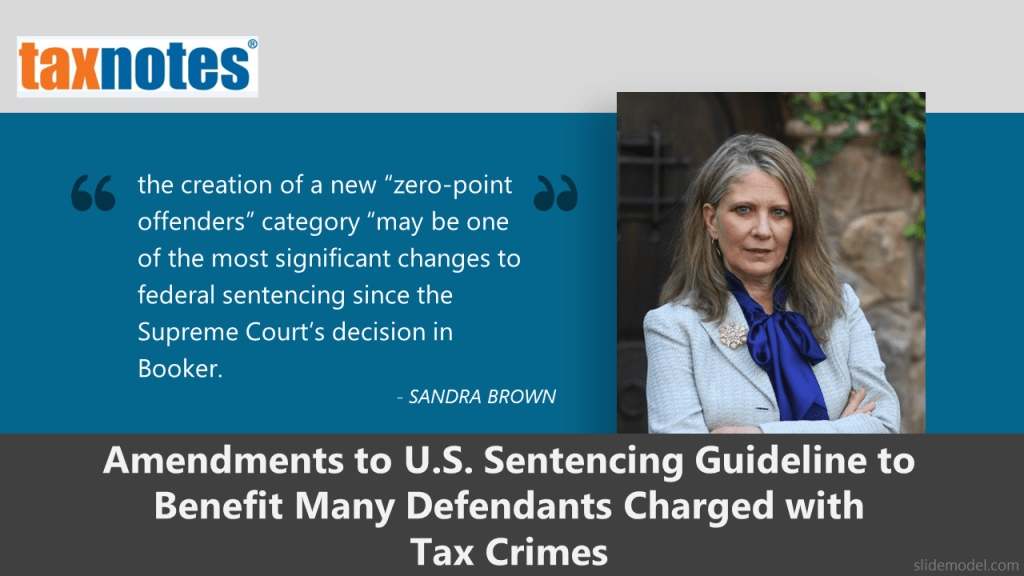 An amendment to the U.S. Sentencing Guidelines Manual that takes effect November 1 will include a new two-level reduction for true first offenders having their first contact with the criminal justice system. The amendment, subject to certain exceptions, will apply to offenders with no criminal history points, including offenders with no prior convictions. In adopting this definition of “zero-point offenders,” the Commission opted to hew to the long-standing and carefully crafted criminal history rules set forth in Chapter Four, regarding which prior convictions count for criminal history purposes and which do not. Notably, this reduction in likely to be in play for those charge with certain white collar crimes, including criminal tax violations.