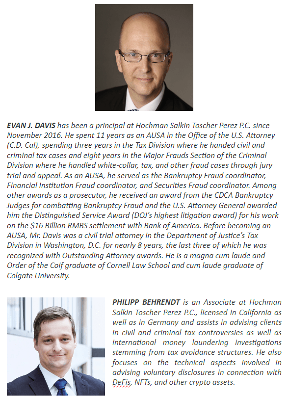 Crypto Enthusiasts and Puerto Rico’s Tax Exemption: A Friendship under IRS Scrutiny by: EVAN DAVIS and PHILIPP BEHRENDT