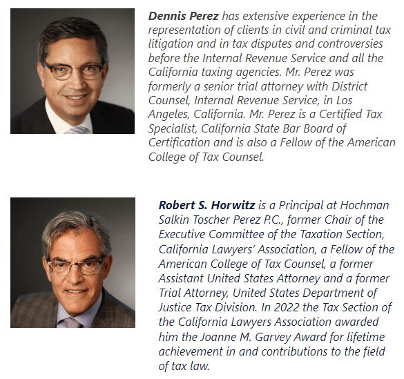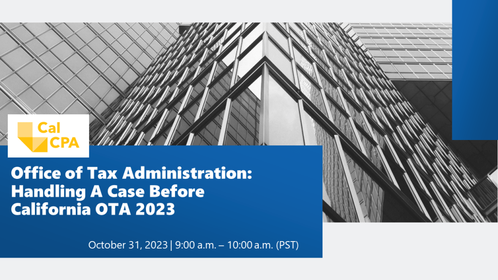 We are pleased to announce that Dennis Perez, Robert Horwitz and Lacey Strachan, will be speaking at the upcoming CalCPA webinar on “Office of Tax Administration: Handling A Case Before California OTA 2023,” October 31, 2023, 9:00 a.m. – 10:00 a.m. (PST).