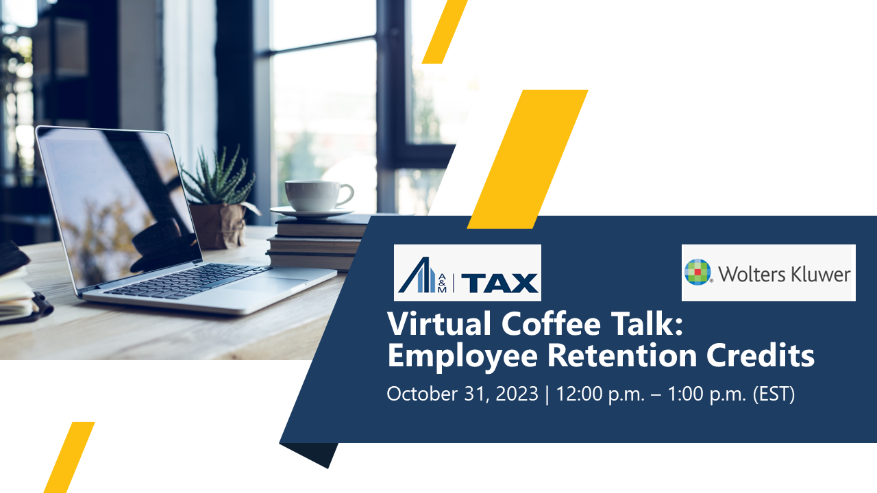 We are pleased to announce that Sandra Brown will be speaking at the upcoming Alvarez& Marsal Tax and Wolters Kluwer Virtual Coffee Talk webinar “Employee Retention Credits” Tuesday, October 31, 2023, 12:00 a.m. – 1:00 p.m. (EST).