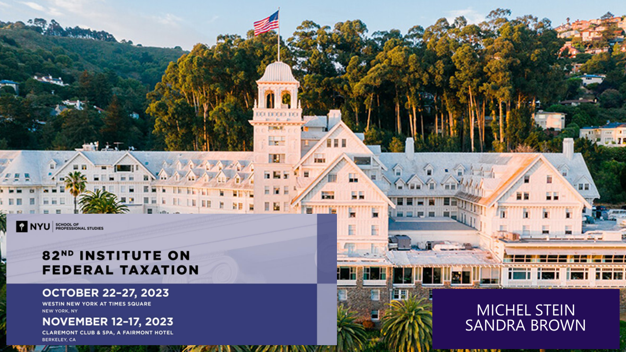 We are pleased to announce that two of our partners will be speaking at the upcoming NYU 82nd Institute on Federal Taxation being held at the Clairmont Resort and Spa, Berkeley, California on November 12-17, 2023.