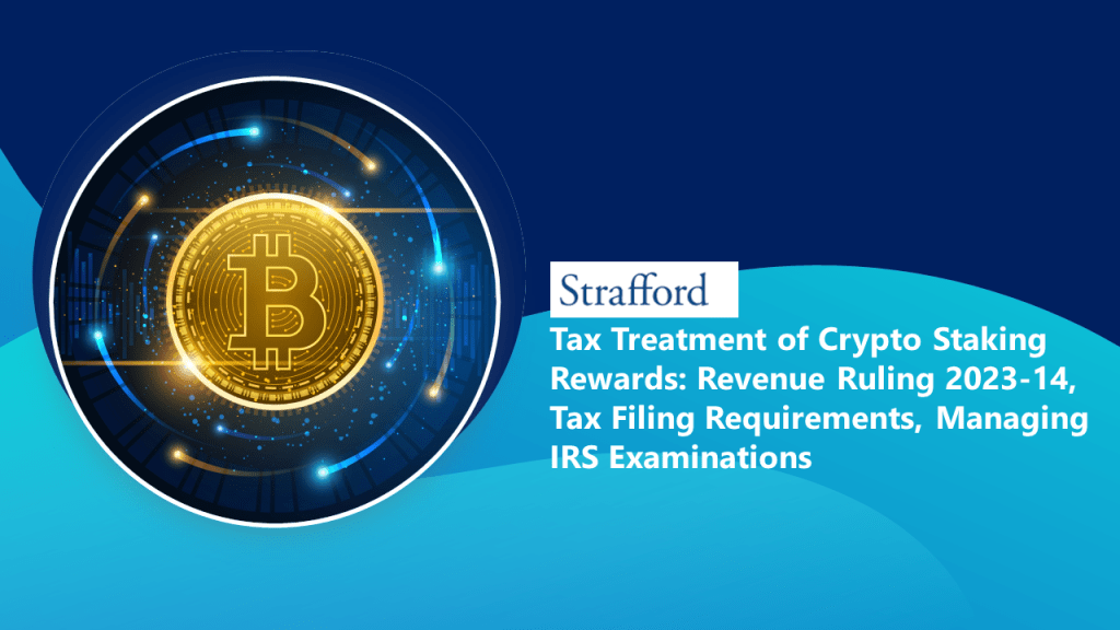 Listen as our panel discusses critical tax considerations for crypto staking rewards, Revenue Ruling 2023-14, analyzing IRS monitoring to increase compliance, and defining proper reporting and tax treatment for crypto staking rewards.
