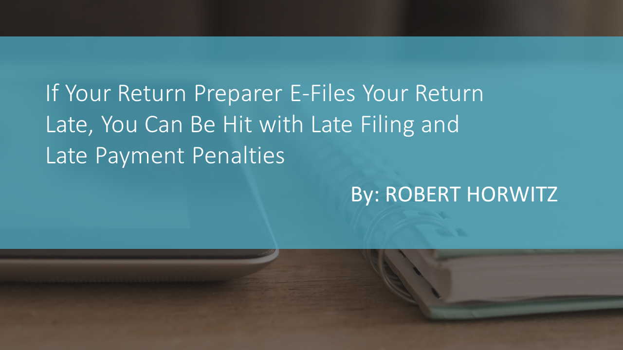 If Your Return Preparer E-Files Your Return Late, You Can Be Hit with Late Filing and Late Payment Penalties by ROBERT S. HORWITZ