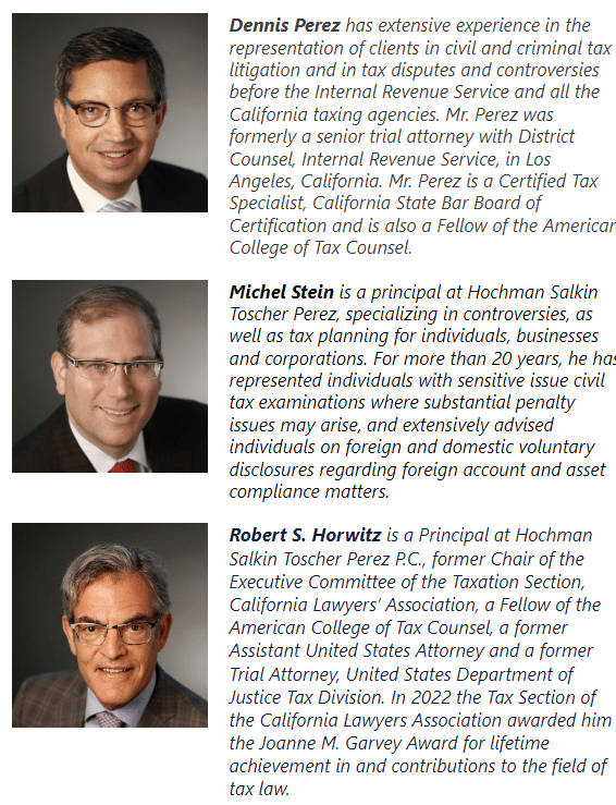 We are pleased to announce that Dennis Perez, Michel Stein, and Robert Horwitz will be speaking at the upcoming CalCPA webinar “Federal and State Residency Issues” Tuesday, December 12, 2023, 9:00 a.m. – 10:00 a.m. (PST).