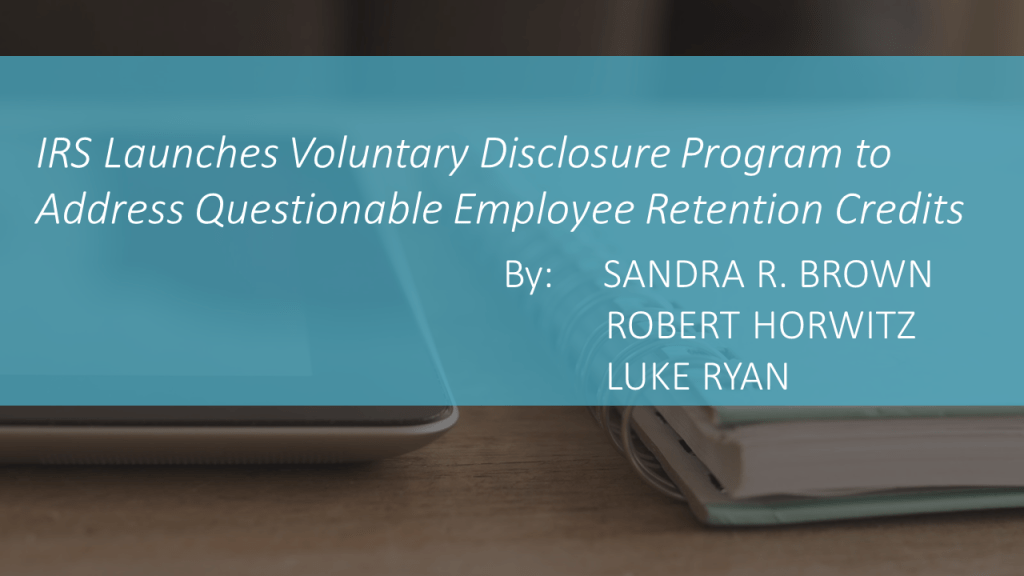 IRS Launches Voluntary Disclosure Program to Address Questionable Employee Retention Credits by SANDRA R. BROWN, ROBERT HORWITZ and LUKE RYAN