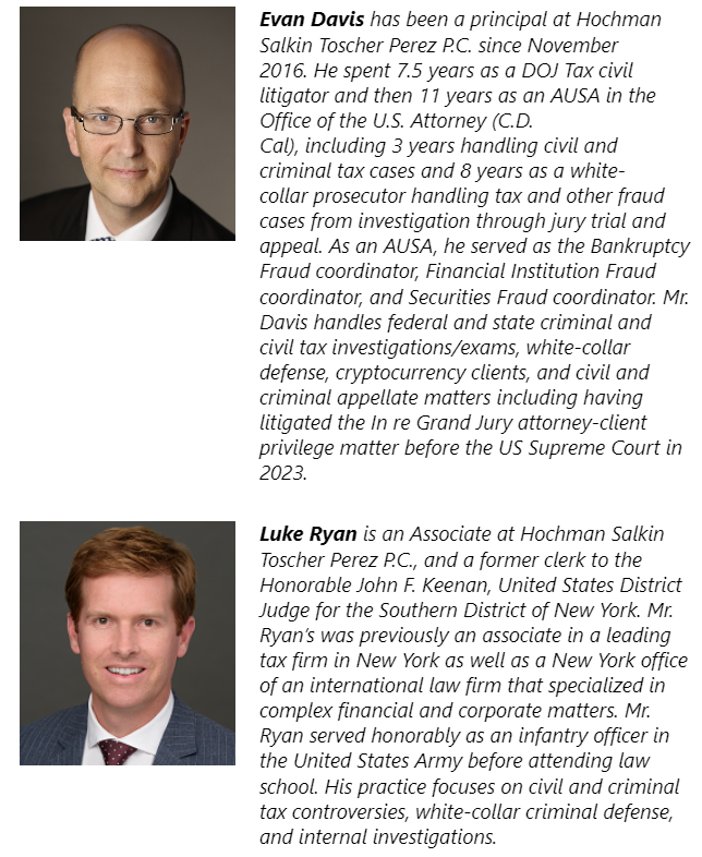IRS Announces New Initiative Targeting High-Income Individuals Who Did Not File A Tax Return – A Risk of Criminal Liability by Steve Toscher, Sandra Brown, Evan Davis and Luke Ryan