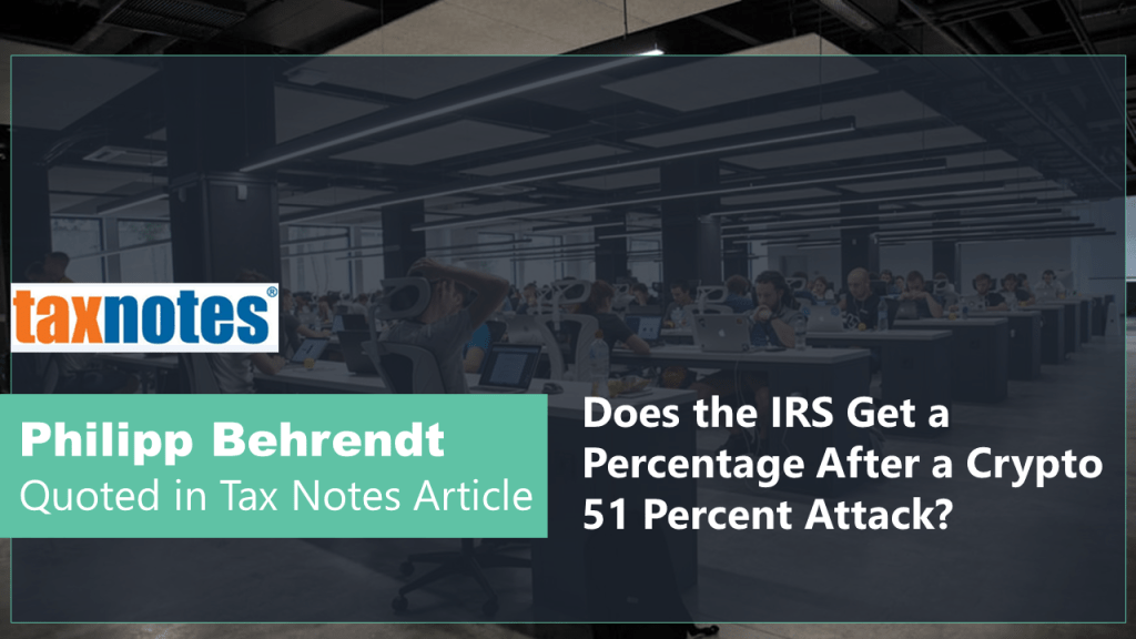 Philipp Behrendt was quoted in Tax Notes Article on the question whether the IRS get a percentage after a crypto 51 percent attack (Posted on Apr. 16, 2024, by Nathan J. Richman and Mary Katherine Browne).