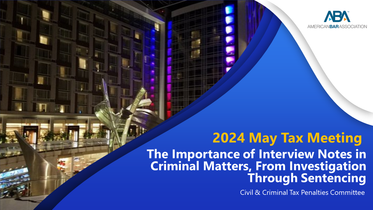Notes of interviews conducted by government agents play a critical role in criminal matters, including tax cases. Panelists will discuss defense strategies related to these notes, from the investigatory stage through indictment, plea or trial, and sentencing. The panel will explore means of obtaining government agent notes through negotiation and motion practice. Recent federal District Court cases that involved litigation over government agent notes will be discussed.