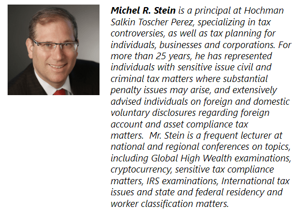 Founded in 1960, Hochman Salkin Toscher Perez P.C., is internationally recognized as the preeminent tax law firm on the West Coast. The reputation of the firm for excellence and integrity in the tax community is unparalleled. The firm specializes in federal and state civil and criminal tax litigation, tax controversies and tax disputes with the federal, state, and local taxing authorities and white collar criminal defense, and has received many notable decisions on behalf of its clients before the Federal Appellate Courts, the Federal District Courts, the Bankruptcy Courts, the United States Tax Court, and various state courts, including the California Franchise Tax Board and the California State Board of Equalization.