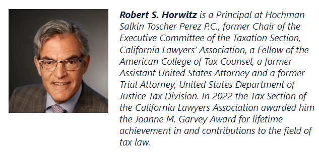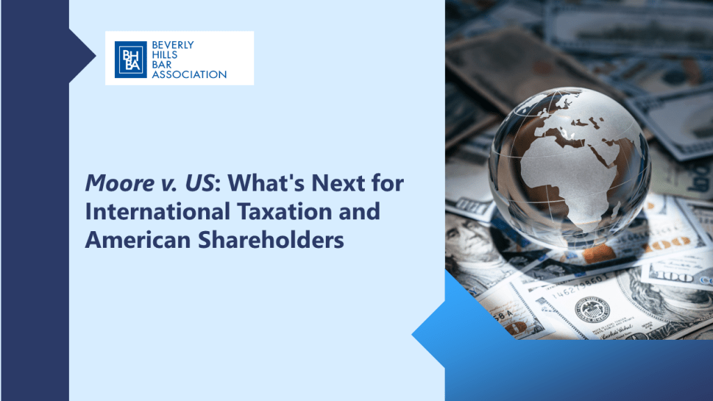 We are pleased to announce that Robert S. Horwitz and Carneil Wilson (Dentons) will be speaking at the upcoming Beverly Hills Bar Association webinar “Moore v. US: What’s Next for International Taxation and American Shareholders” Tuesday, July 9, 2024, 12:30 a.m. – 1:30 p.m. (PST).