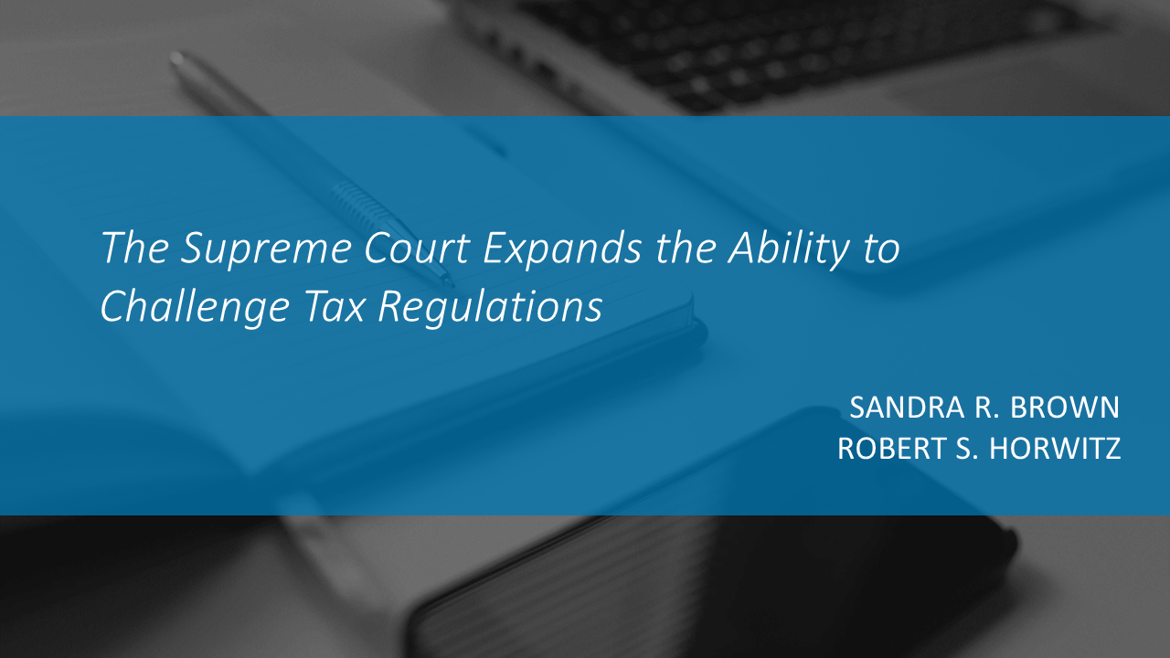 The Supreme Court Expands the Ability to Challenge Tax Regulations by: SANDRA R. BROWN AND ROBERT S. HORWITZ