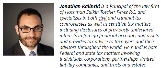 For more information, please contact Jonathan Kalinski at kalinski@taxlitigator.com