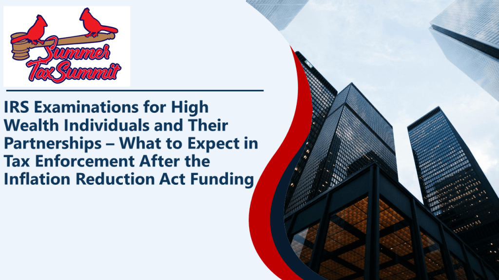 We are pleased to announce that Michel R. Stein along with Maria Dolan (Deputy Director Pass-Through Entities, LB&I, IRS), Richard Tierney (Director of Exam, SB/SE, IRS) and Jonathan Strouse (Partner, Harrison LLP, Chicago, IL) will be speaking on IRS Examinations for High Wealth Individuals and Their Partnerships – What to Expect in Tax Enforcement After the Inflation Reduction Act Funding at the upcoming St. Louis Summer Tax Summit being held at the Missouri Athletic Club on Tuesday, August 27, 2024, 1:30 p.m. – 2:30 p.m. (CT).