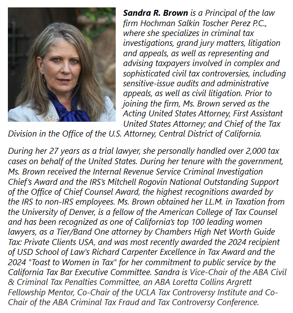 For more information, please contact Sandra R. Brown at brown@taxlitigator.com