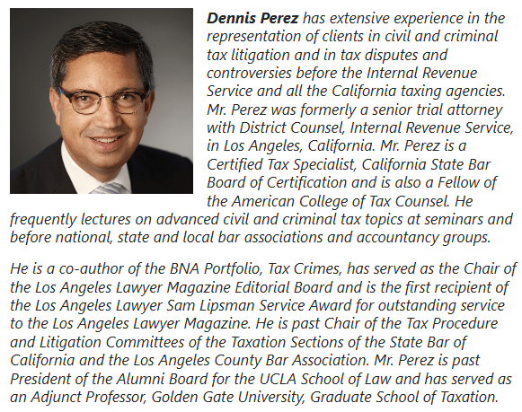 For more information, please contact Dennis Perez at perez@taxlitigator.com