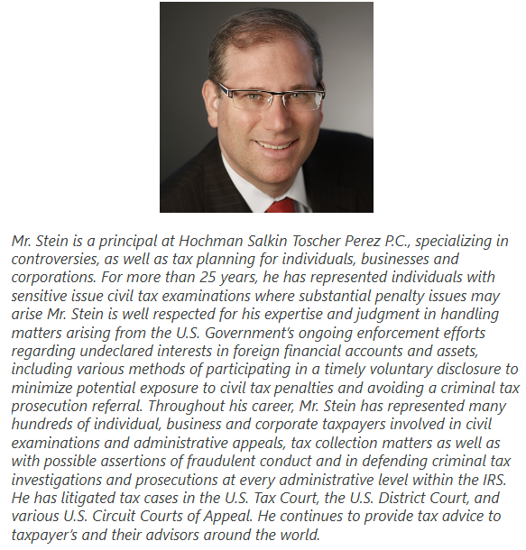 For more information, please contact Michel Stein at stein@taxlitigator.com