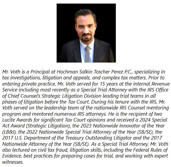 For more information, please contact Sebastian Voth at voth@taxlitigator.com