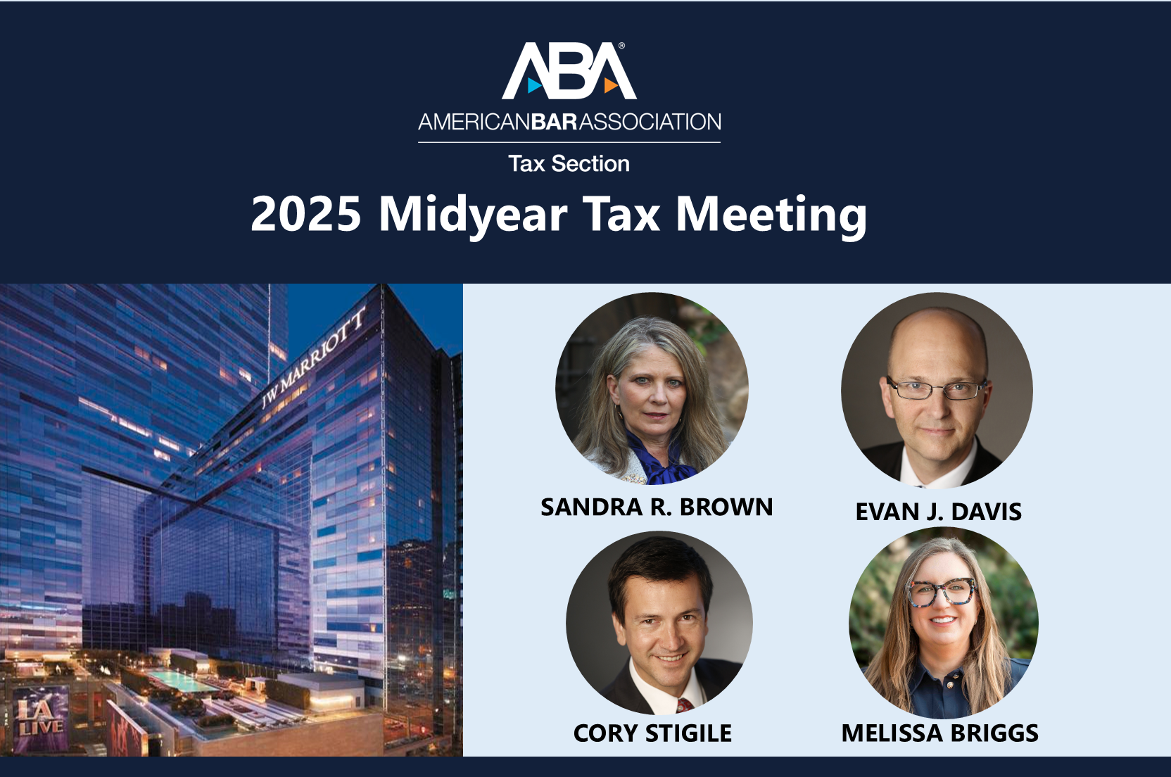 We are pleased to announce that four of our Principals will be presenting at the ABA 2025 Midyear Tax Meeting which will take place on February 19-21 at the JW Marriott Los Angeles L.A. LIVE.