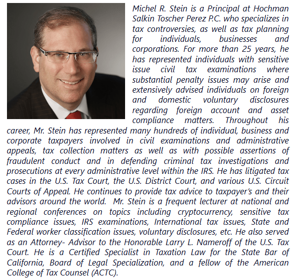 For more information, please contact Michel Stein at stein@taxlitigator.com
