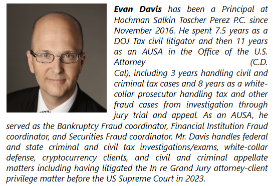 For more information please contact Evan Davis at davis@taxlitigator.com.
