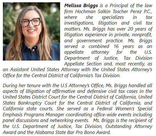 For more information, please contact Melissa Briggs at briggs@taxlitigator.com