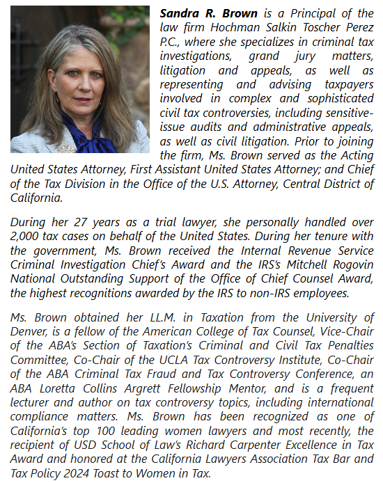For more information, please contact Sandra Brown at brown@taxlitigator.com.