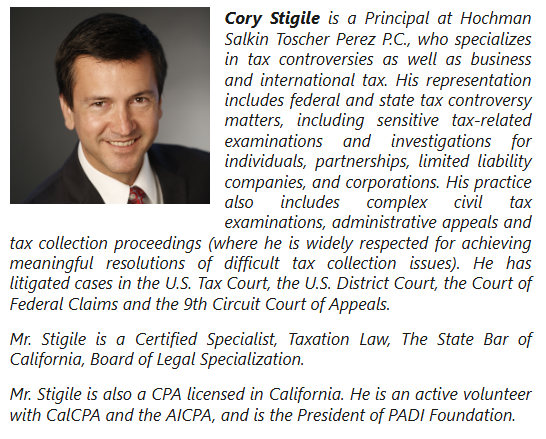 For more information, please contact Cory Stigile at stigile@taxlitigator.com.