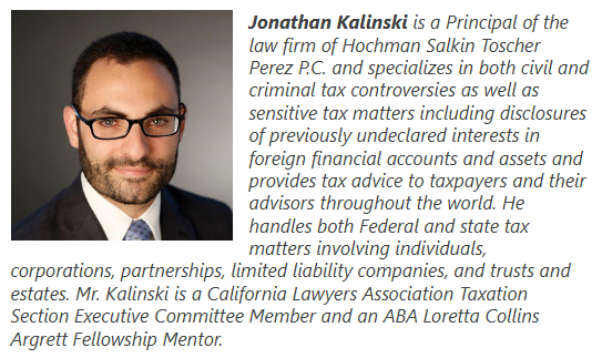 For more information, please contact Jonathan Kalinski at kalinski@taxlitigator.com