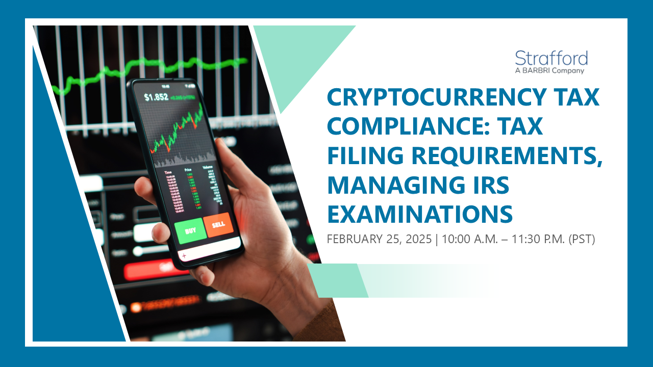 We are pleased to announce that Steven Toscher Michel R. Stein and Philipp Behrendt will be speaking at the upcoming Strafford Cryptocurrency Tax Compliance: Tax Filing Requirements, Managing IRS Examinations webinar, Tuesday, February 25, 2025, 10:00 a.m. – 11:30 a.m. (PST).