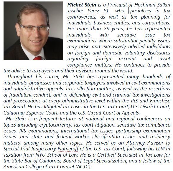 For more information, please contact Michel Stein at stein@taxtlitigator.com