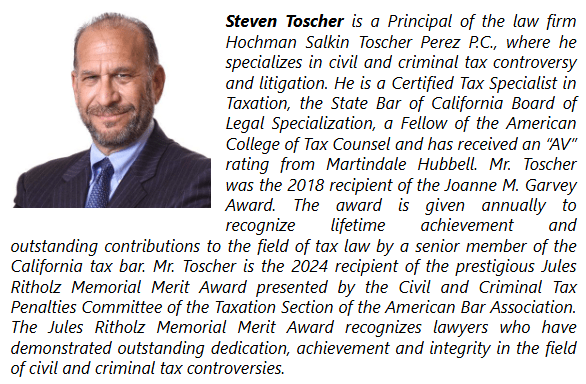 For more information, please contact Steven Toscher at toscher@taxlitigator.com.