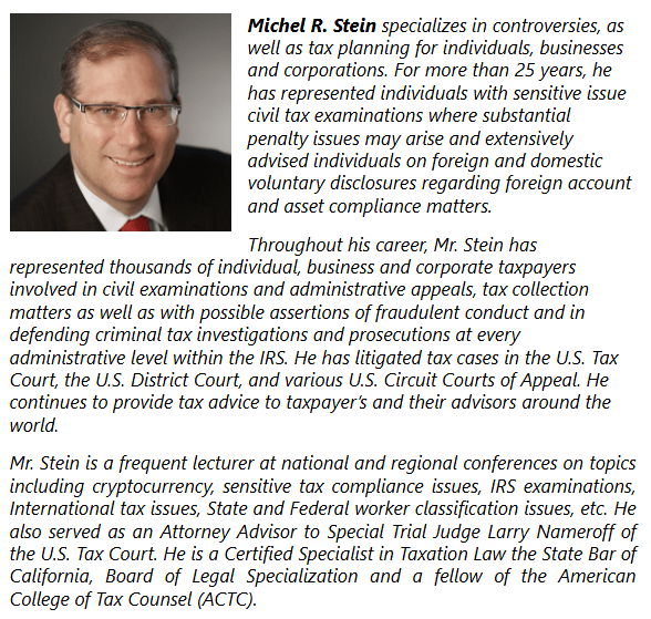 For more information, please contact Michel Stein at stein@taxtlitigator.com