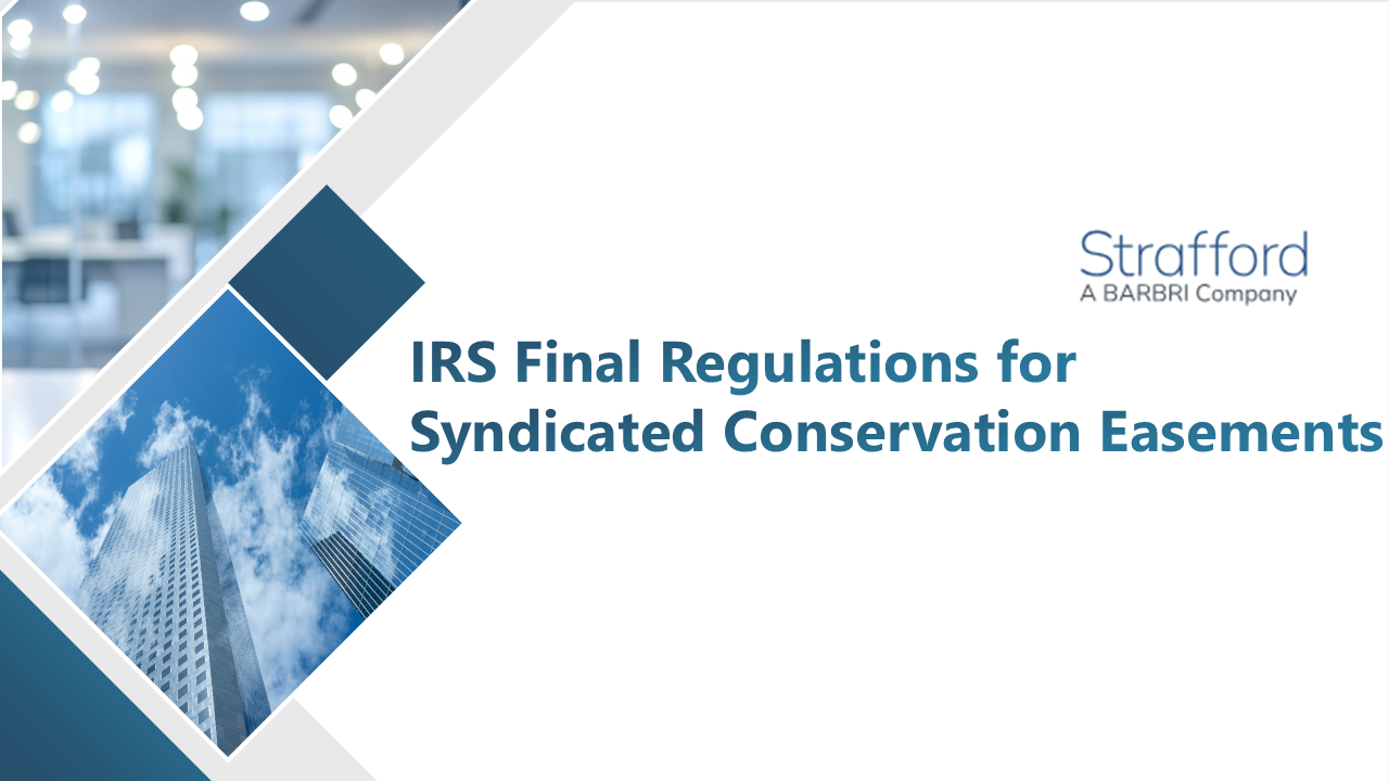We are pleased to announce that Steven Toscher and Michel R. Stein along with William J. Curtis (Polsinelli) will be speaking at the upcoming Strafford IRS Final Regulations for Syndicated Conservation Easements webinar, Thursday, March 27, 2025, 10:00 a.m. – 11:30 a.m. (PST).