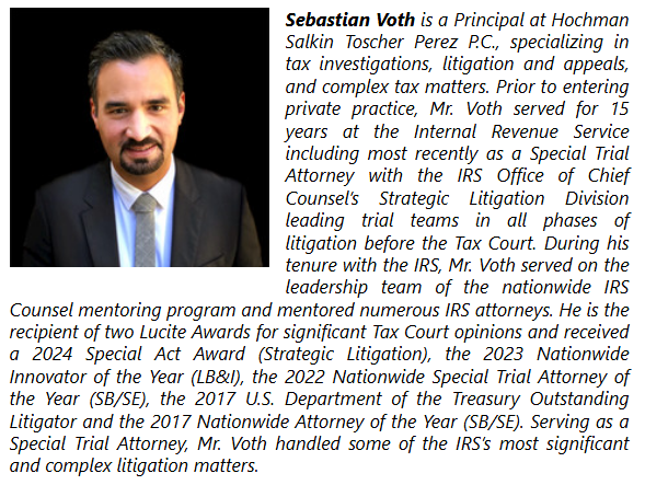 For more information, please contact Sebastian Voth at voth@taxlitigator.com