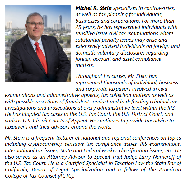 For more information, please contact Michel R. Stein at stein@taxlitigator.com