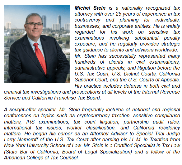 For more information, please contact Michel R. Stein at stein@taxlitigator.com