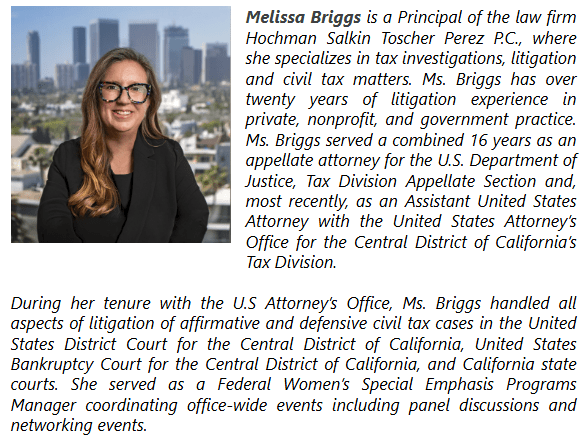 For more information, please contact Melissa Briggs at briggs@taxlitigator.com