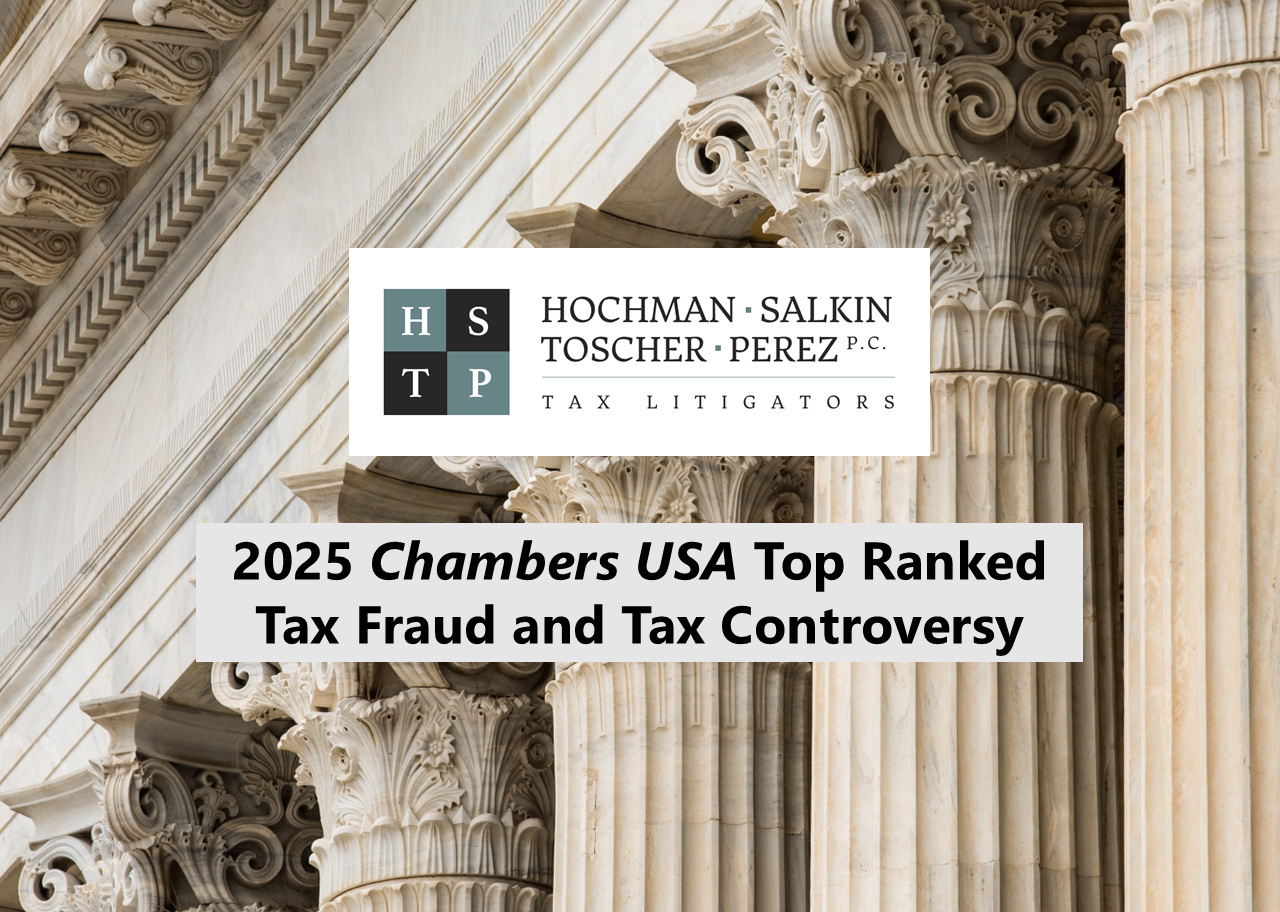 Once again, HOCHMAN SALKIN TOSCHER PEREZ P.C., along with Steven Toscher and Sandra R. Brown, have been recognized by Chambers and Partners, 2025 USA, for strength and expertise in the areas of Tax Fraud and Tax Controversy.