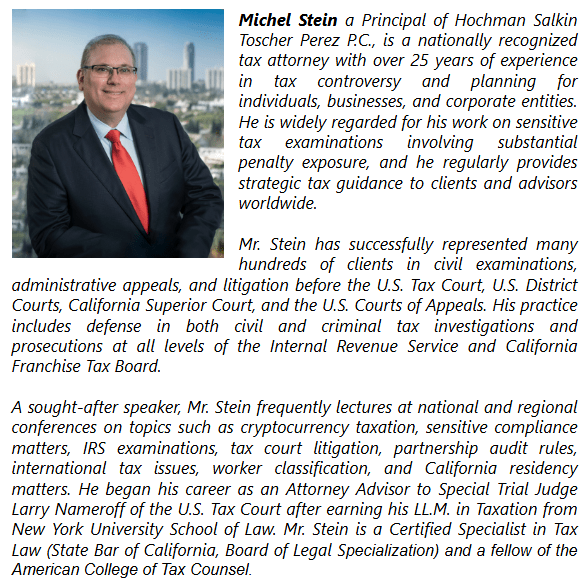 For more information, please contact Michel R. Stein at stein@taxlitigator.com