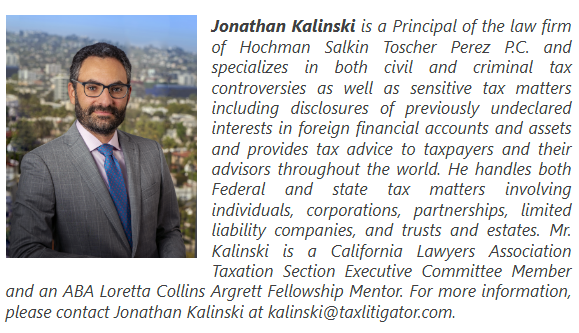 For more information, please contact Jonathan Kalinski at kalinski@taxlitigator.com