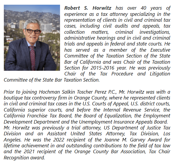 For more information, please contact Robert S. Horwitz at horwitz@taxlitigator.com