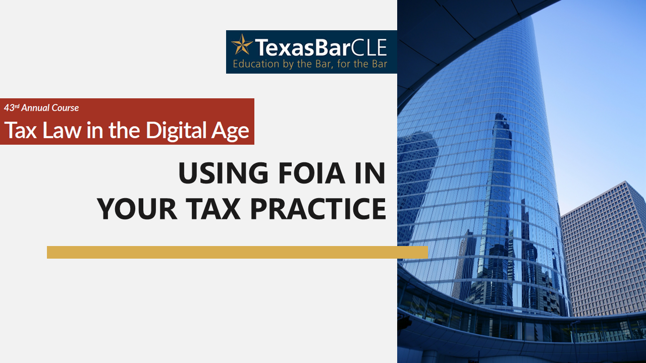 Attendees will gain practical tools for leveraging FOIA effectively within a broader tax controversy strategy, including considerations around timing, procedural hurdles, and advocacy.