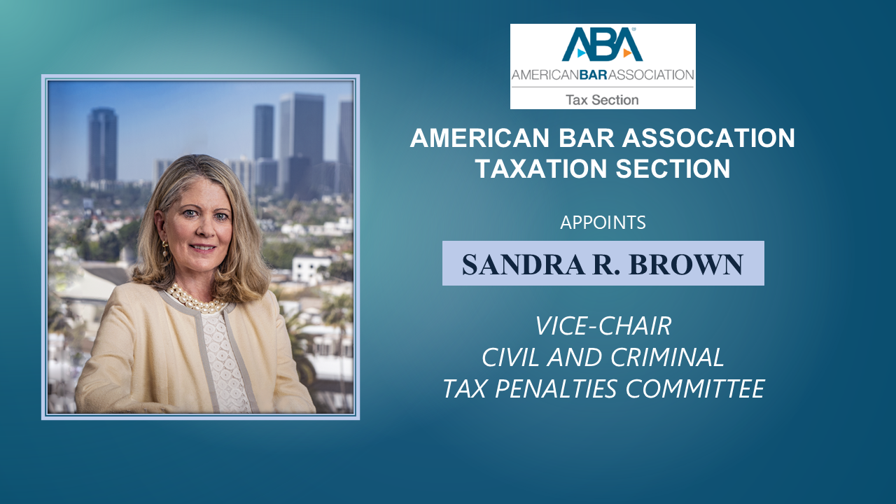 We are pleased to announce that Sandra R. Brown has been appointed Vice-Chair of the American Bar Association Civil and Criminal Tax Penalties Committee for 2025-2026. Sandra’s recognition of this position by her peers, speaks to her abilities and contributions of the ABA Taxation Section.