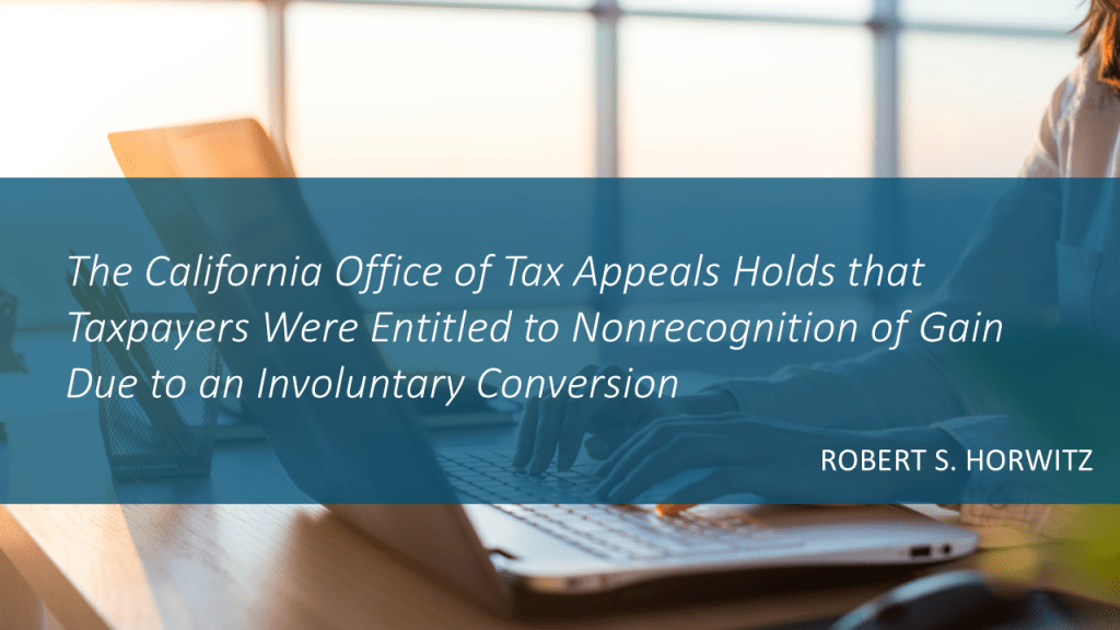 Internal Revenue Code (“IRC”) sec. 1033 allows a taxpayer to elect to defer gain from an involuntary conversion of property if the taxpayer “purchases other property similar to or related in service or use to the property so converted, or purchases stock in the acquisition of control of a corporation owning such property.” In a recently issued precedential decision, Appeal of Mitchell, 2026-OTA-196P, the California Office of Tax Appeals (“OTA”) held that a taxpayer was entitled to nonrecognition of gain under sec. 1033 from the sale of property adjacent to the converted property. Let’s first look at the facts and then the OTA’s analysis that led to its holding in favor of the taxpayers.